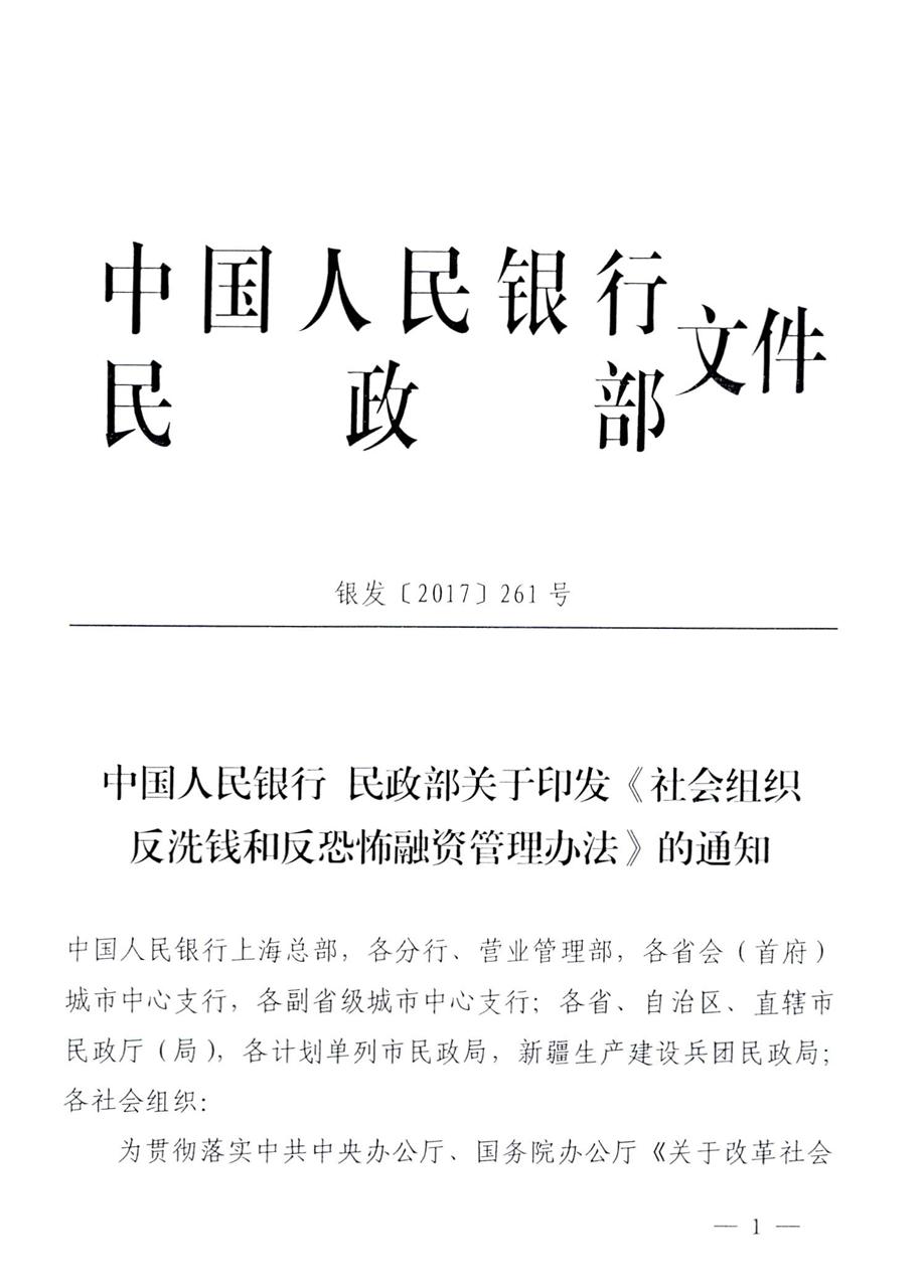 关于转发《社会组织反洗钱和反恐怖融资管理办法》的通知