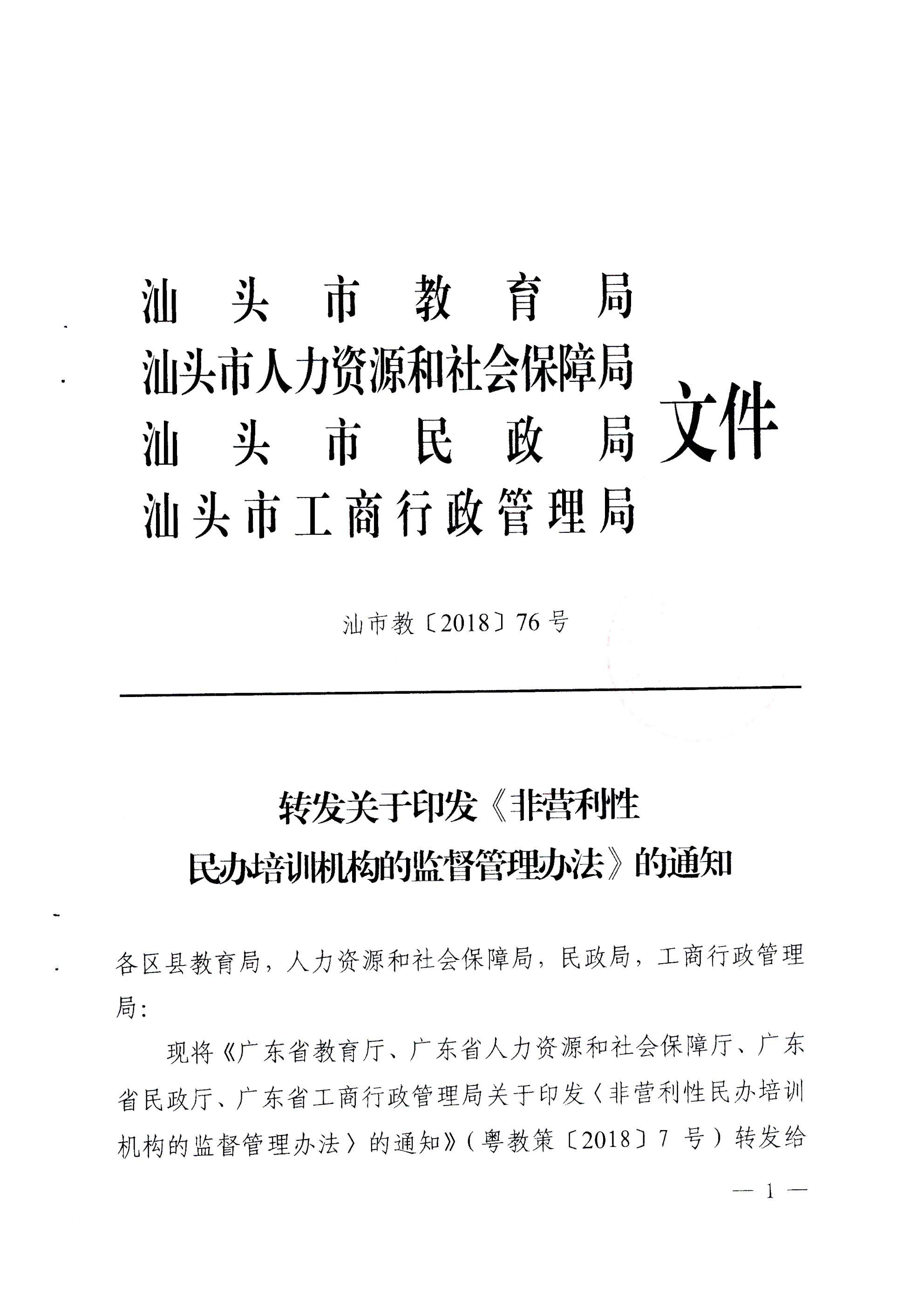 转发关于印发《非营利性民办培训机构的监督管理办法》的通知